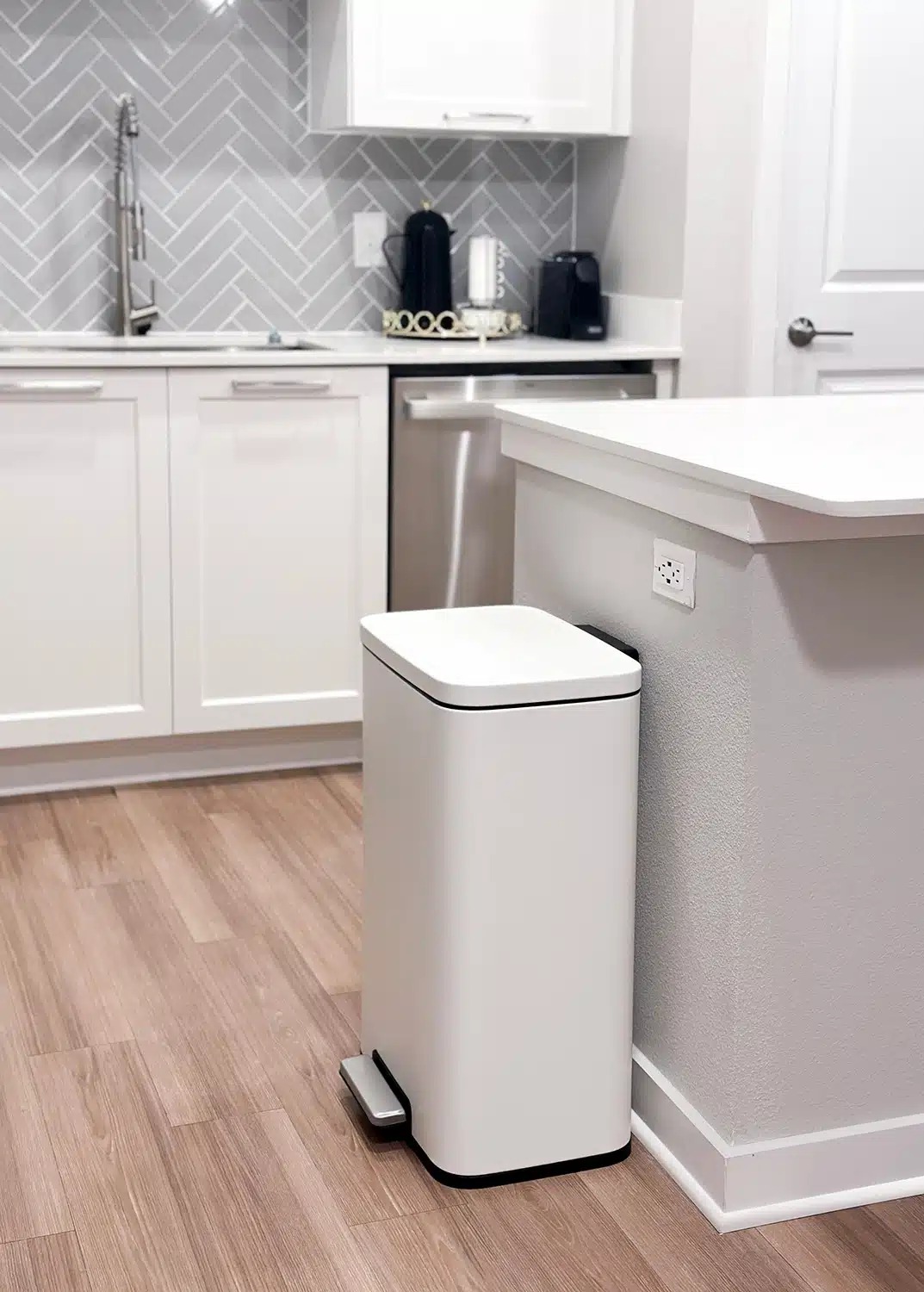 سطل زباله پدالی مستطیلی شیک با روکش ضد اثر انگشت و درب نرم.